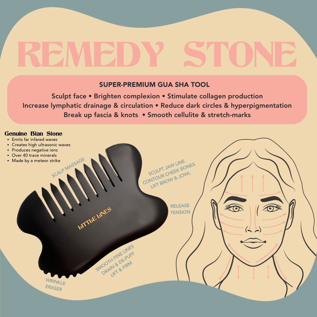 - Crafted from Natural Bian Stone, our Remedy Stone Gua Sha may help stimulate circulation, promote a healthier complexion, reduce puffiness, and enhance a natural glow.